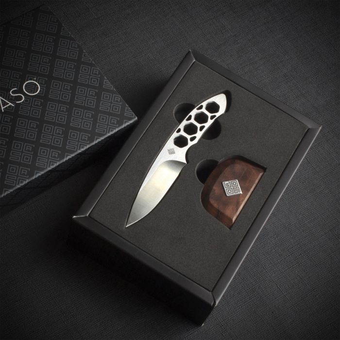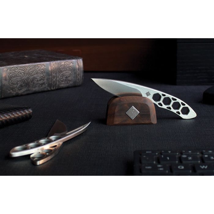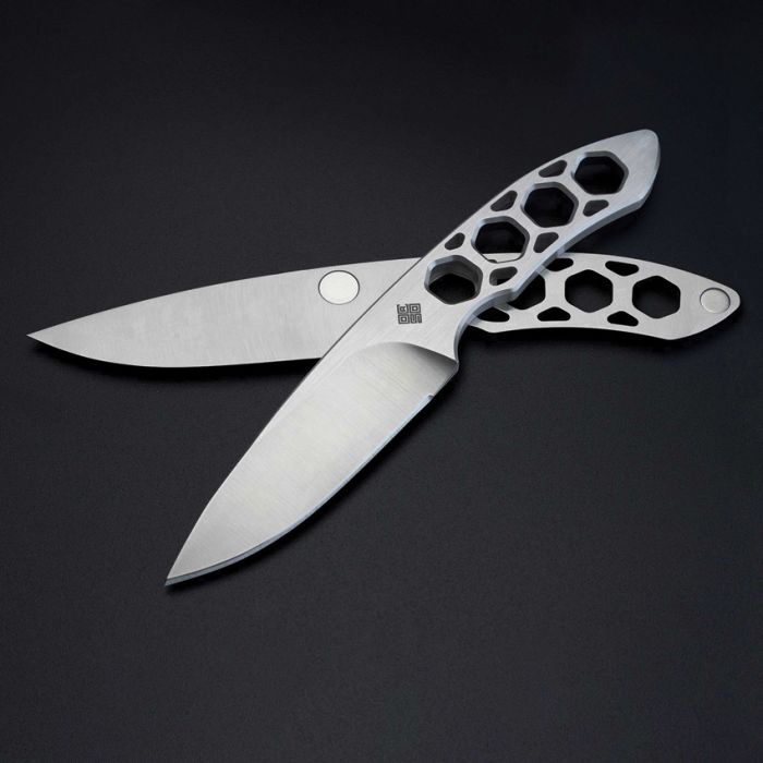 5.5" (13.97cm) overall. 2.75" (6.99cm) satin finish 420J2 stainless blade. Skeletonized stainless handle. Features two symmetrical chisel ground knives held... Read more