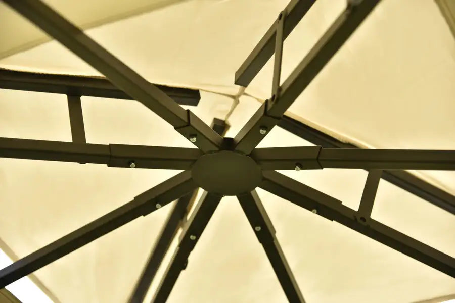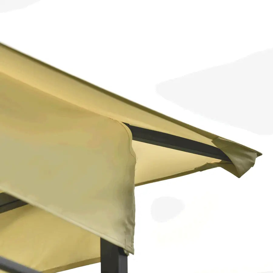 Keep your outdoor events looking classy with this polished gazebo inspired canopy tent that will instantly upgrade your outdoor activity experience. Eye-catching in design, this canopy is crafted with a heavy-duty sleek black steel frame with upper welded designs that pairs beautifully with the beige color scheme.