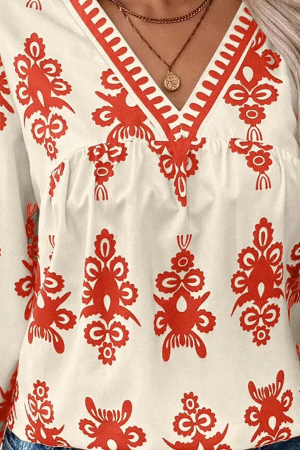 Printed V-Neck Three-Quarter Sleeve Blouse