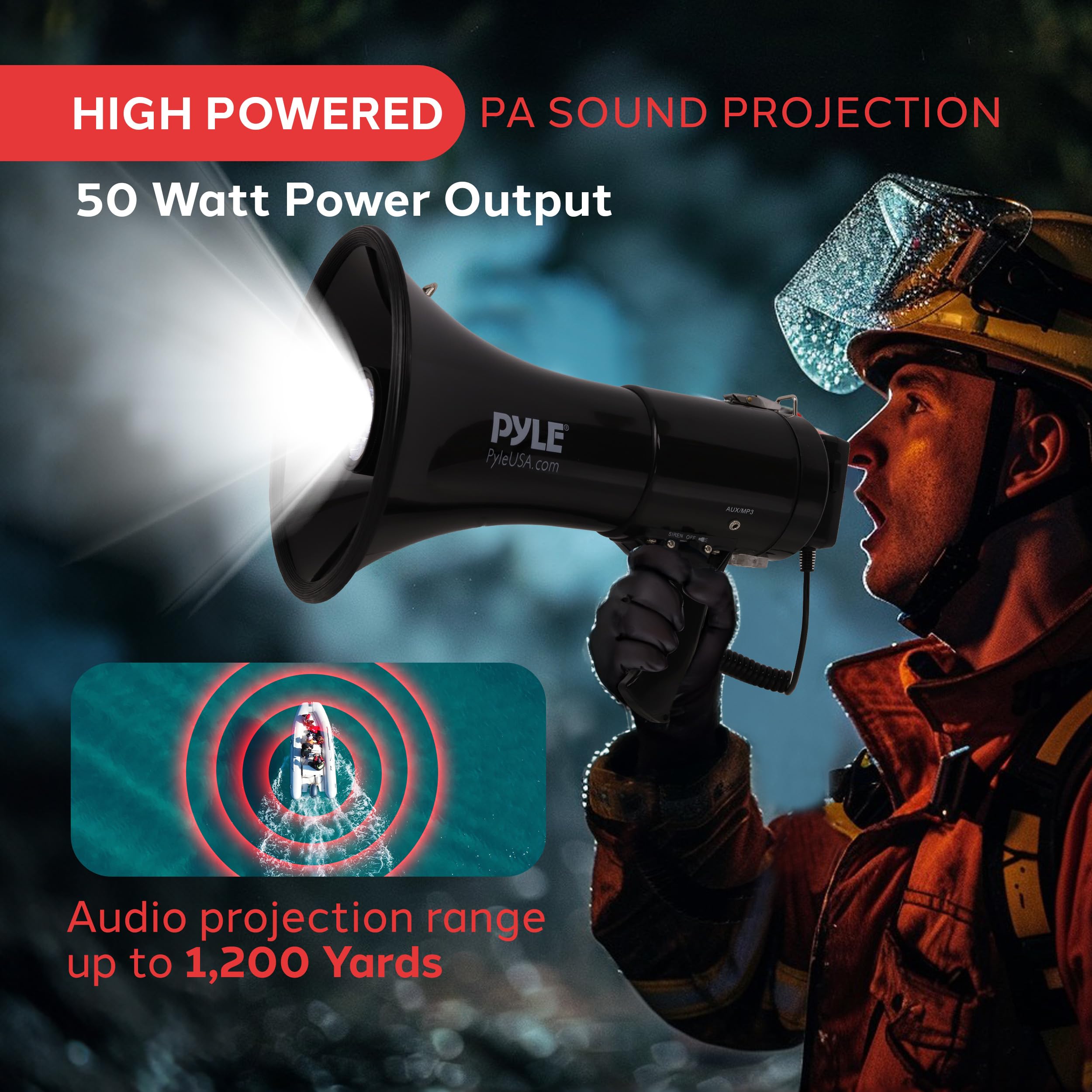 50W Handheld Lightweight Bullhorn - with Mic, AUX IN for MP3 & Rechargeable Battery - Indoor Outdoor Use POWERFUL VOICE... Read more