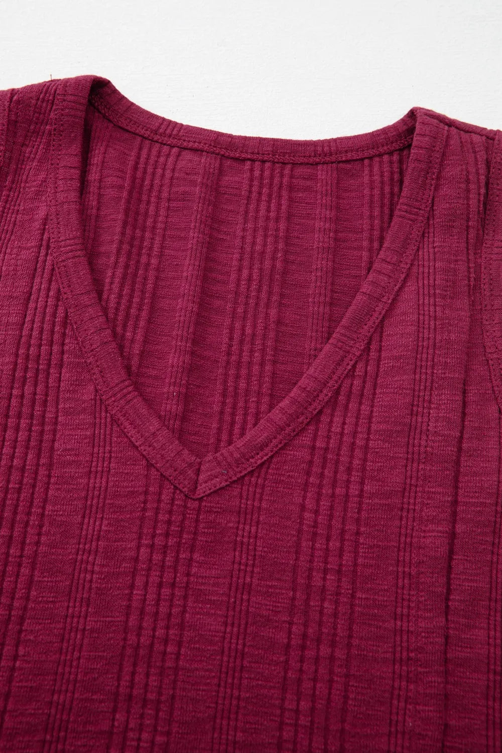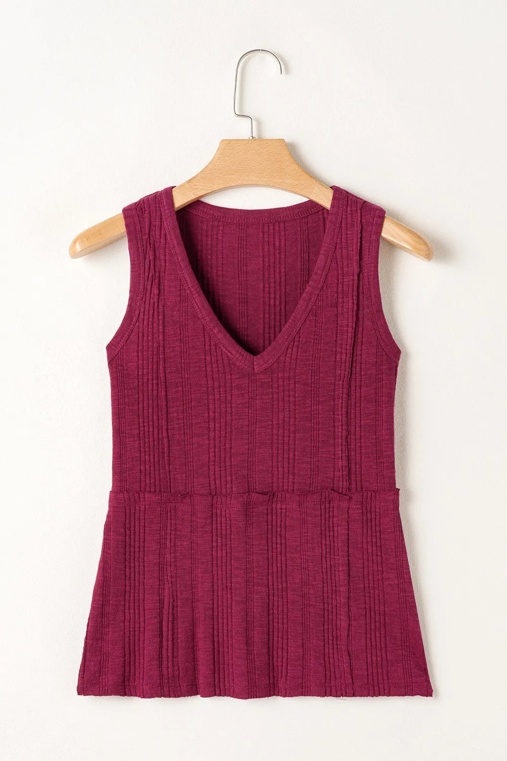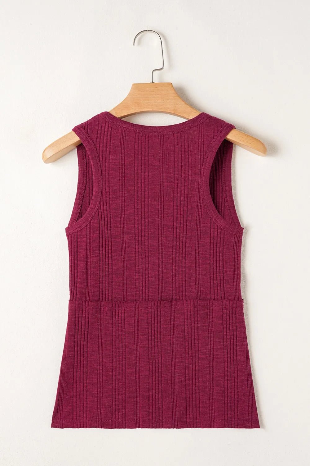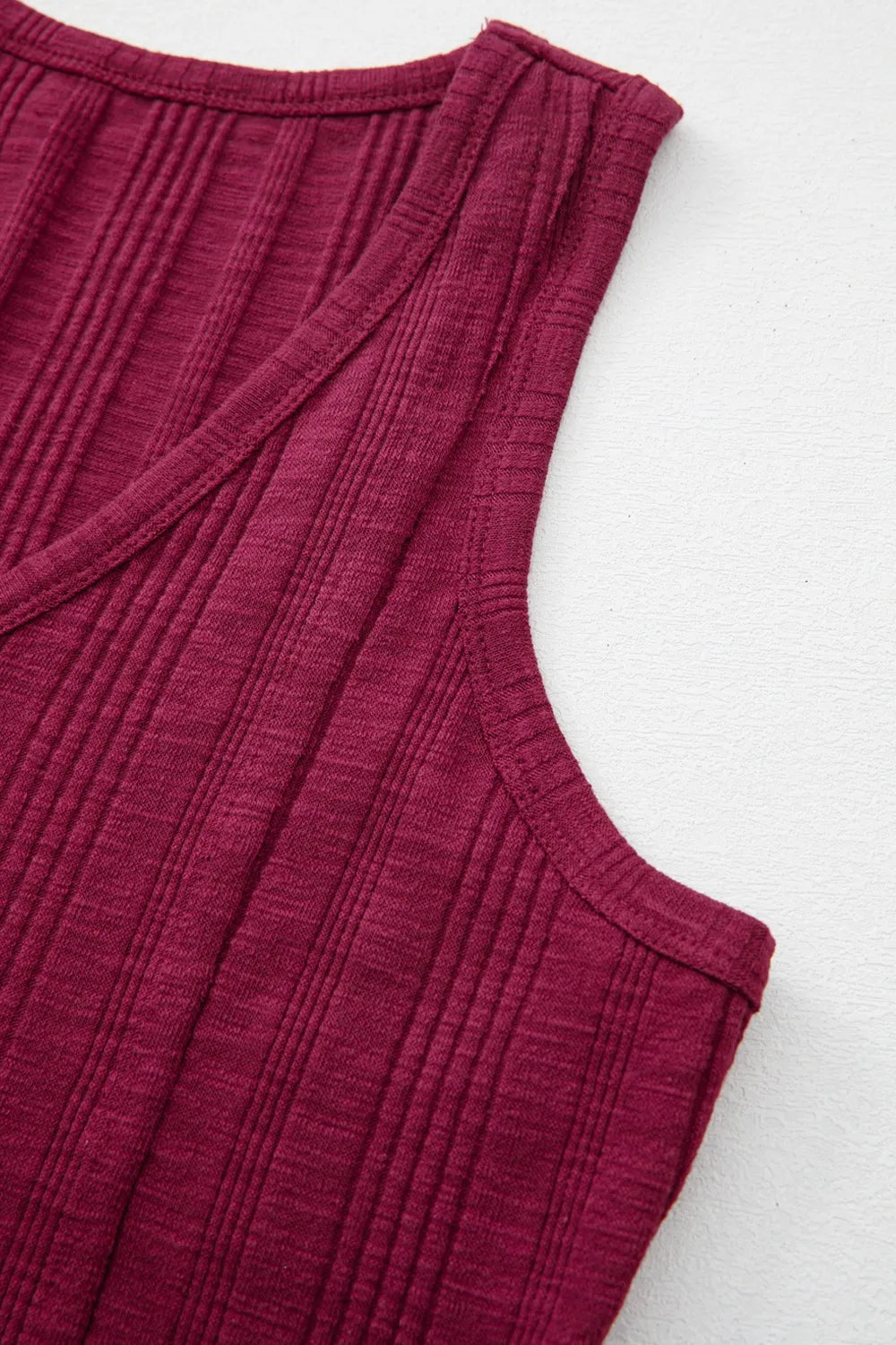 Ribbed Textured Exposed Stitching Knit Tank Top