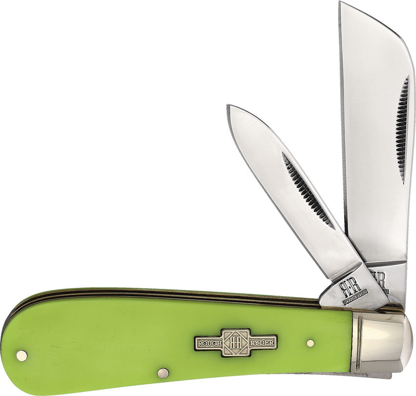 3.88" (9.86cm) closed. Mirror finish 440 stainless hawkbill and pen blades. Glow in the Dark synthetic handle. Nickel silver bolster(s).... Read more