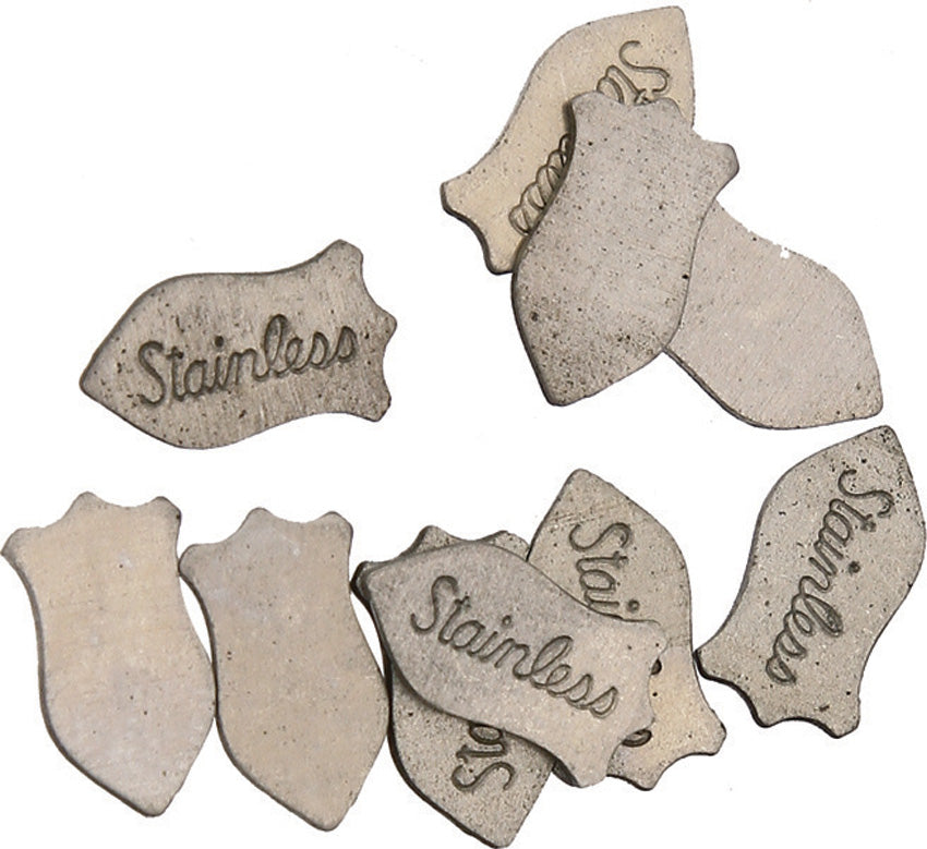 Badge design. Nickel silver finish. 7/16" overall. Smooth on one side. Stainless in cursive lettering on other side. Package of... Read more
