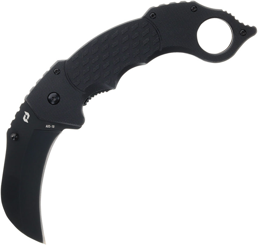 6" (15.24cm) closed. 3" (7.62cm) black oxide coated AUS-10A stainless karambit blade. Black G10 handle. Thumb stud. Finger ring. Pocket... Read more