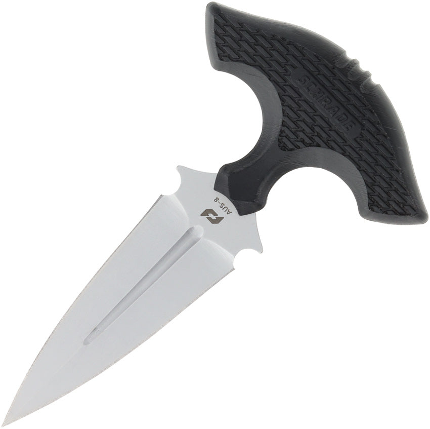 5.75" (14.61cm) overall. 3.5" (8.89cm) gray TiNi coated double edge AUS-8 stainless dagger blade. Black rubberized nylon handle. Black injection... Read more