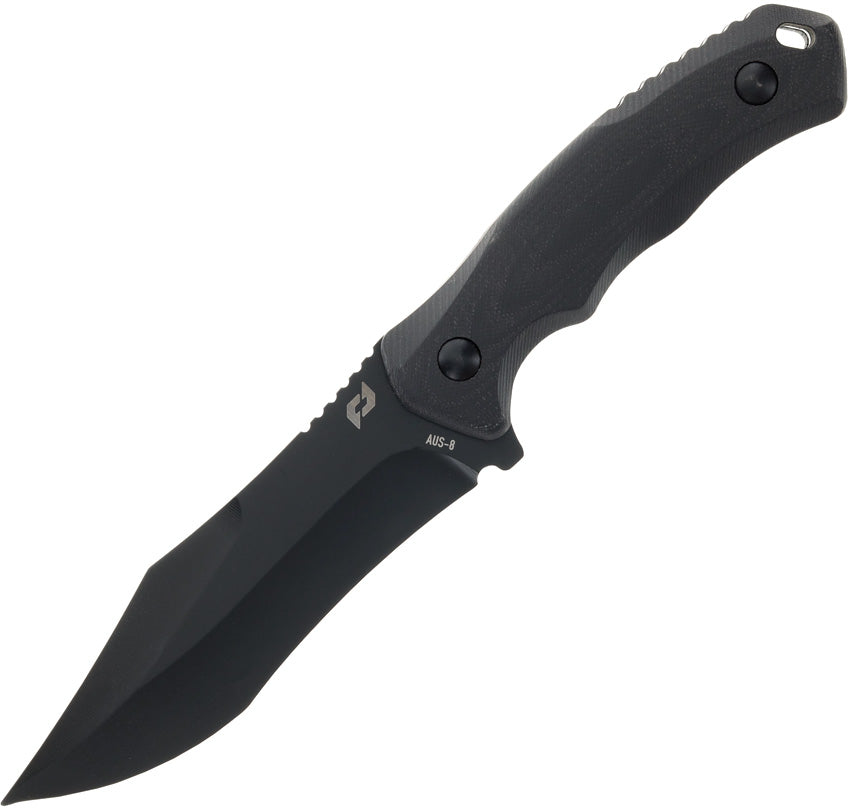 10" (25.4cm) overall. 5" (12.7cm) black oxide coated AUS-8 stainless clip point blade. Black G10 handle. Full tang. Lanyard hole.... Read more