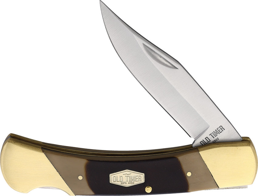 5" (12.7cm) closed. 4" (10.16cm) satin finish 7Cr17MoV stainless clip point blade. Brown sawcut bone handle. Brass bolster(s). Inlay shield.... Read more