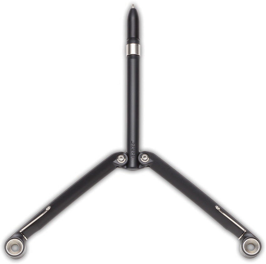 4.25" closed. 7.88" opened with pen in use. Black synthetic construction with angular arms. Unscrew tip to reveal ink pen.... Read more