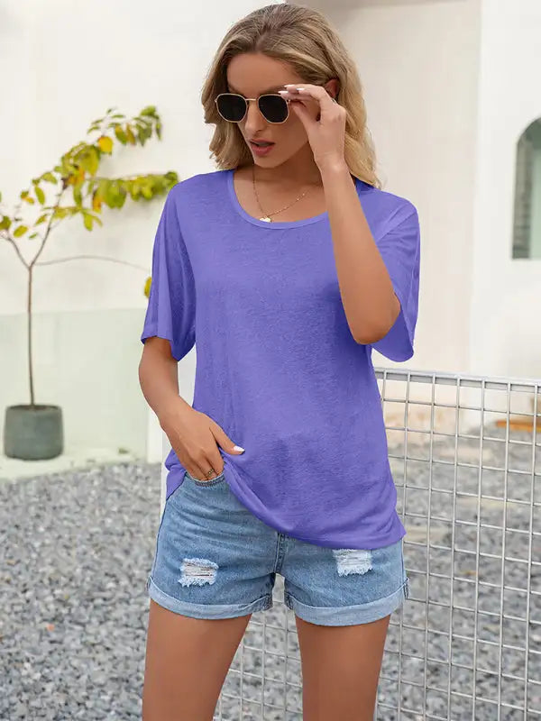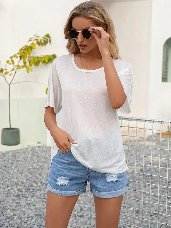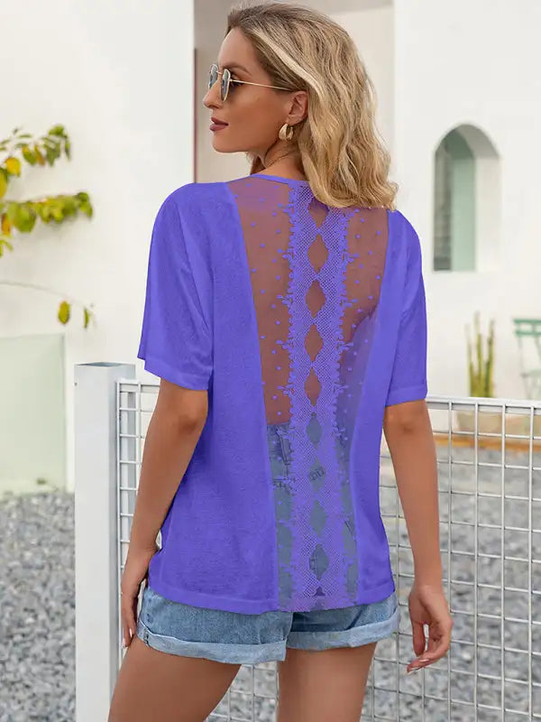 Sexy Cutout Lace Panel Crew Neck Short Sleeve T-Shirt
