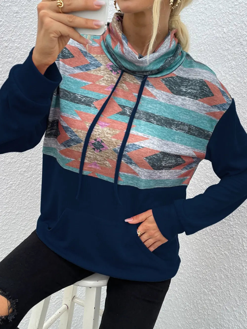Shiny Geometric Drawstring Long-Sleeve Sweatshirt