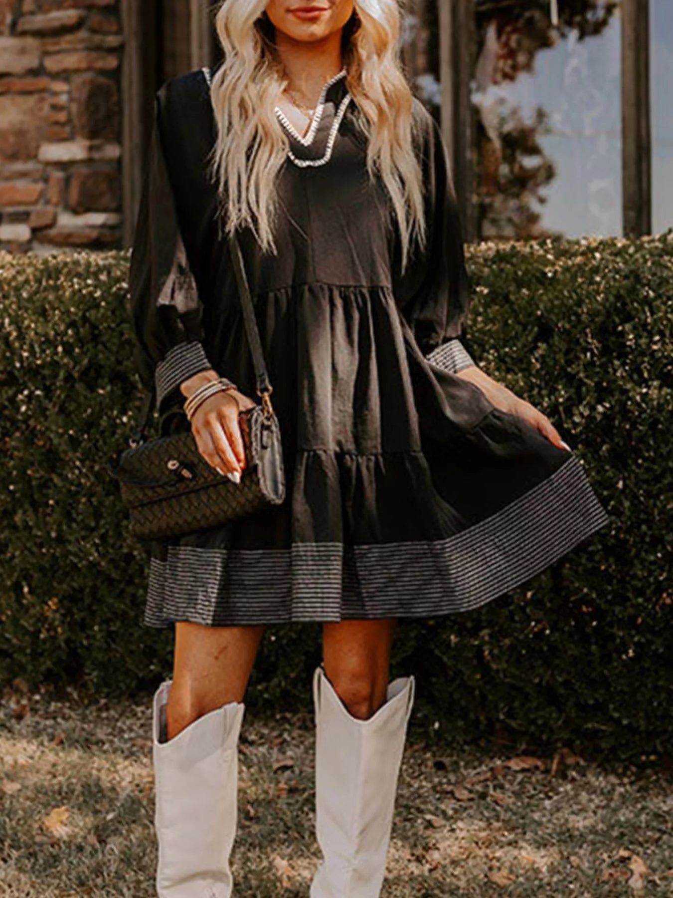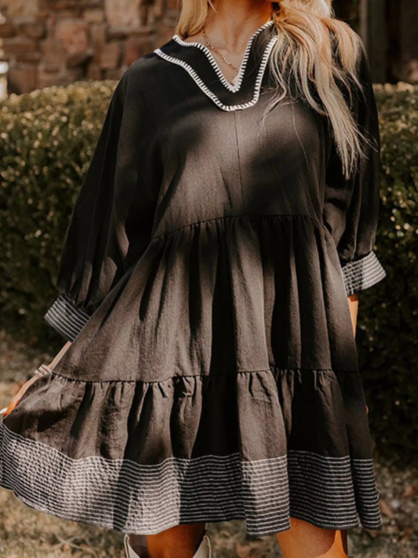 Striped Hem 3/4 Sleeve Tiered Dress