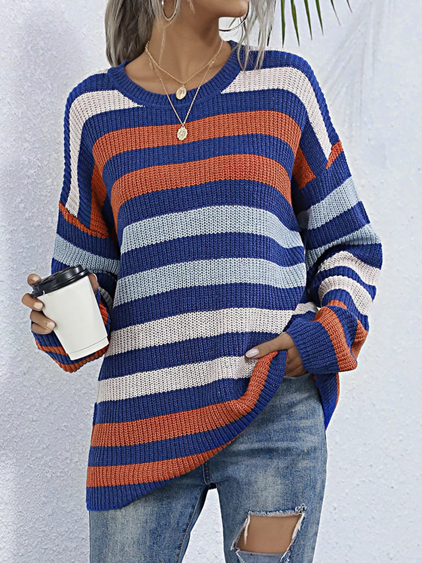 Striped Knit Round Neck Sweater