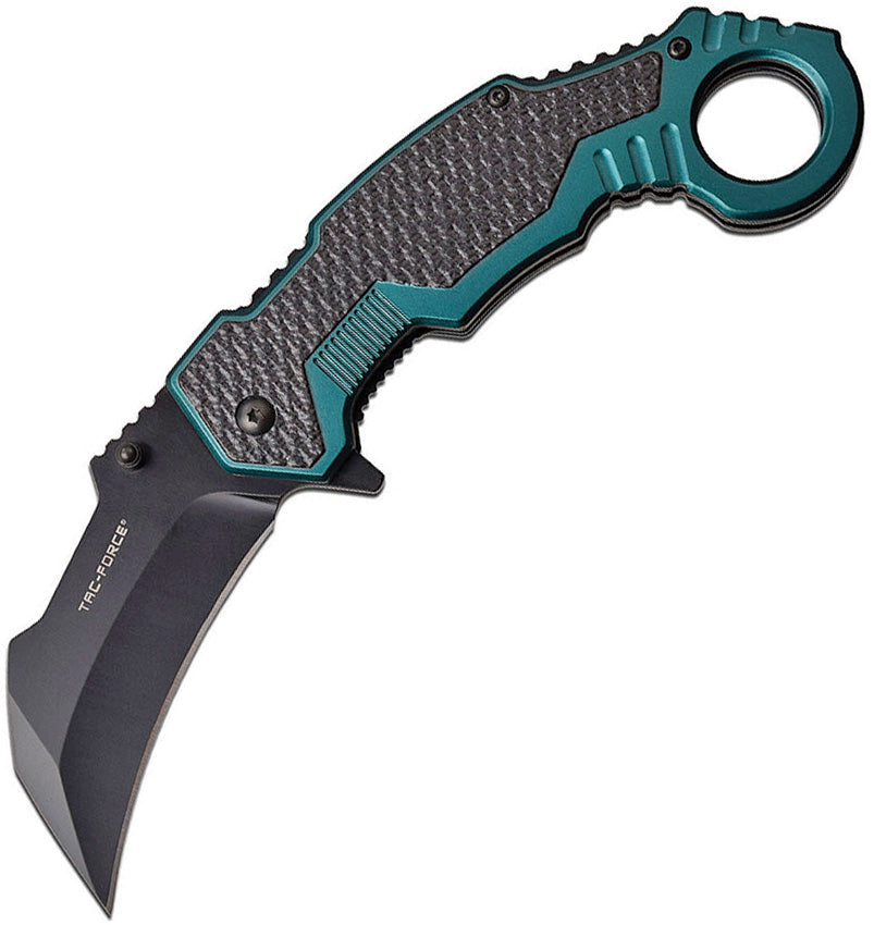 Assisted opening. 5.25" closed. 3.25" black finish 3Cr13 stainless karambit blade. Black and green anodized aluminum handle. Extended tang. Thumb... Read more