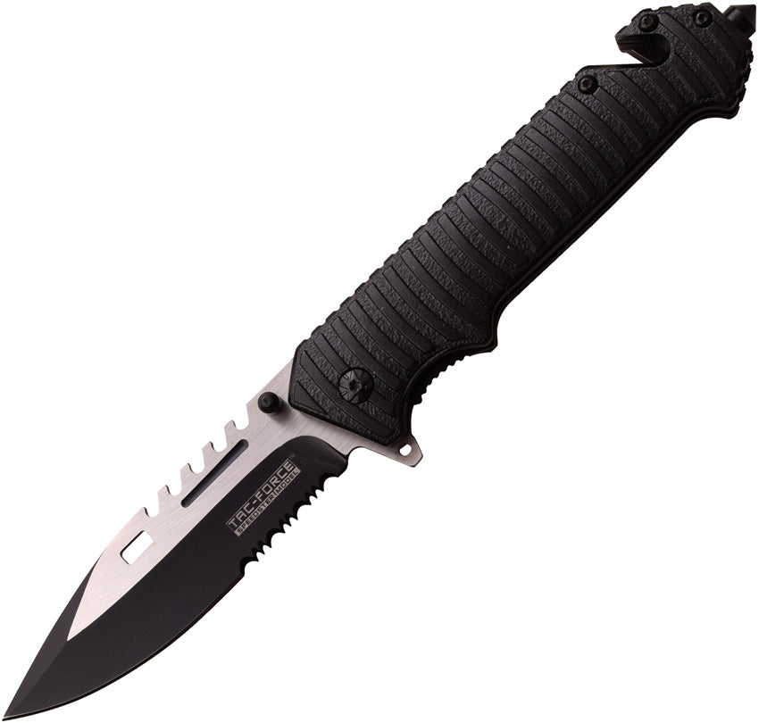 Assisted opening. 5" (12.7cm) closed. 4" (10.16cm) two-tone finish partially serrated stainless blade. Black aluminum handle. Extended tang. Thumb stud.... Read more