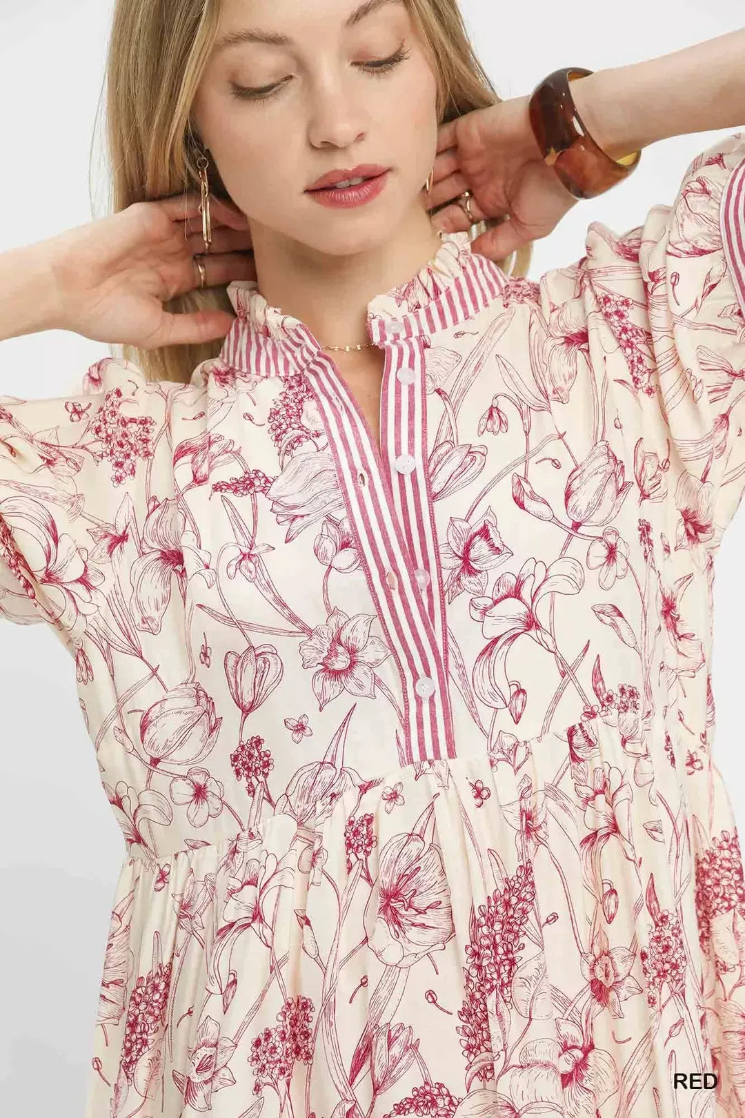 Umgee Floral Tiered Midi Dress with Ruffle Trim