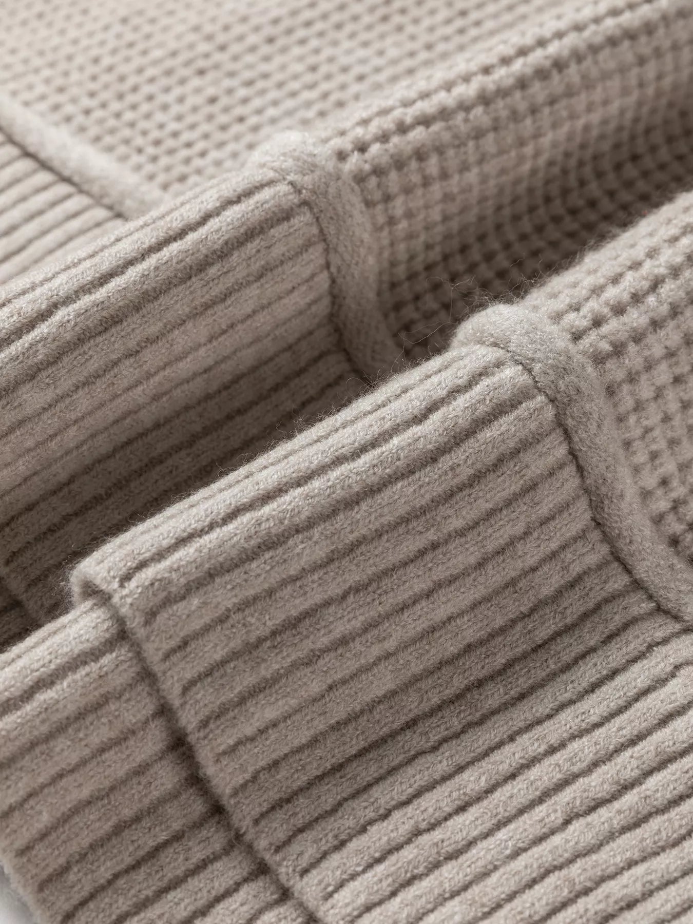 Waffle Texture Knit Ribbed High Neck Drop Shoulder Sweater