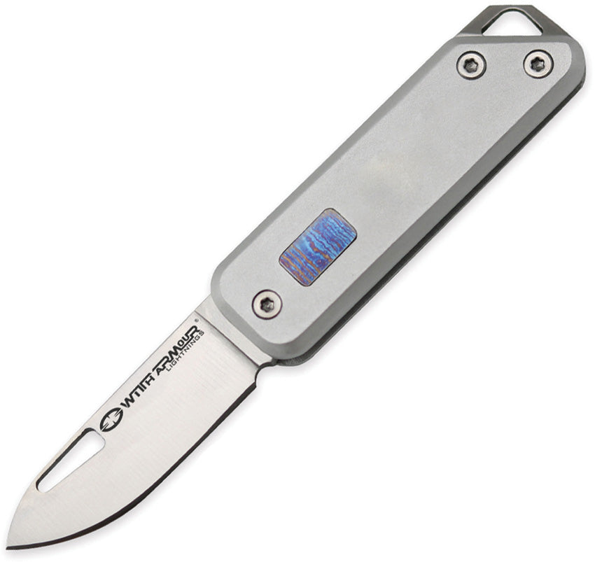 2.38" (6.05cm) closed. 1.5" (3.81cm) satin finish Sandvik 12C27 stainless blade. Gray aluminum handle with timascus inlay. Lanyard hole. Boxed.…......Please... Read more