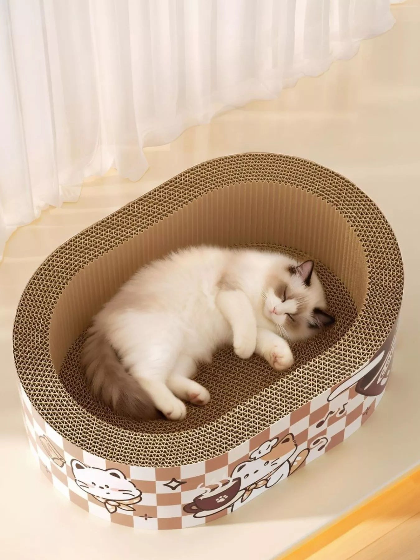 Wear-Resistant Cat Scratching Lounge Bed with Cartoon Design